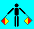 The flag signal for “N” is seen on the left, and the one for “D” on the right. One can clearly see how the flag signal for “D” corresponds to the vertical line in the middle of the peace symbol, and how the flag signal for “N” corresponds to the additional lines in the bottom half of the circle.
